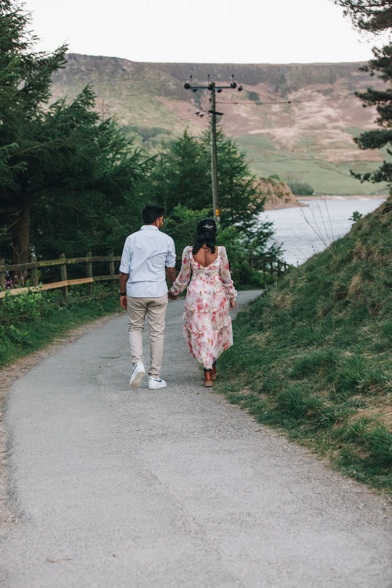 The sun slipped below the horizon, and a soft indigo blue crept into the sky. Just when we thought the moment couldn’t get more romantic, the crescent moon appeared, hanging delicately above the moors. We paused. The couple hand in hand,silhouettes framed by fading light and moonrise – it felt like a scene from a dream.