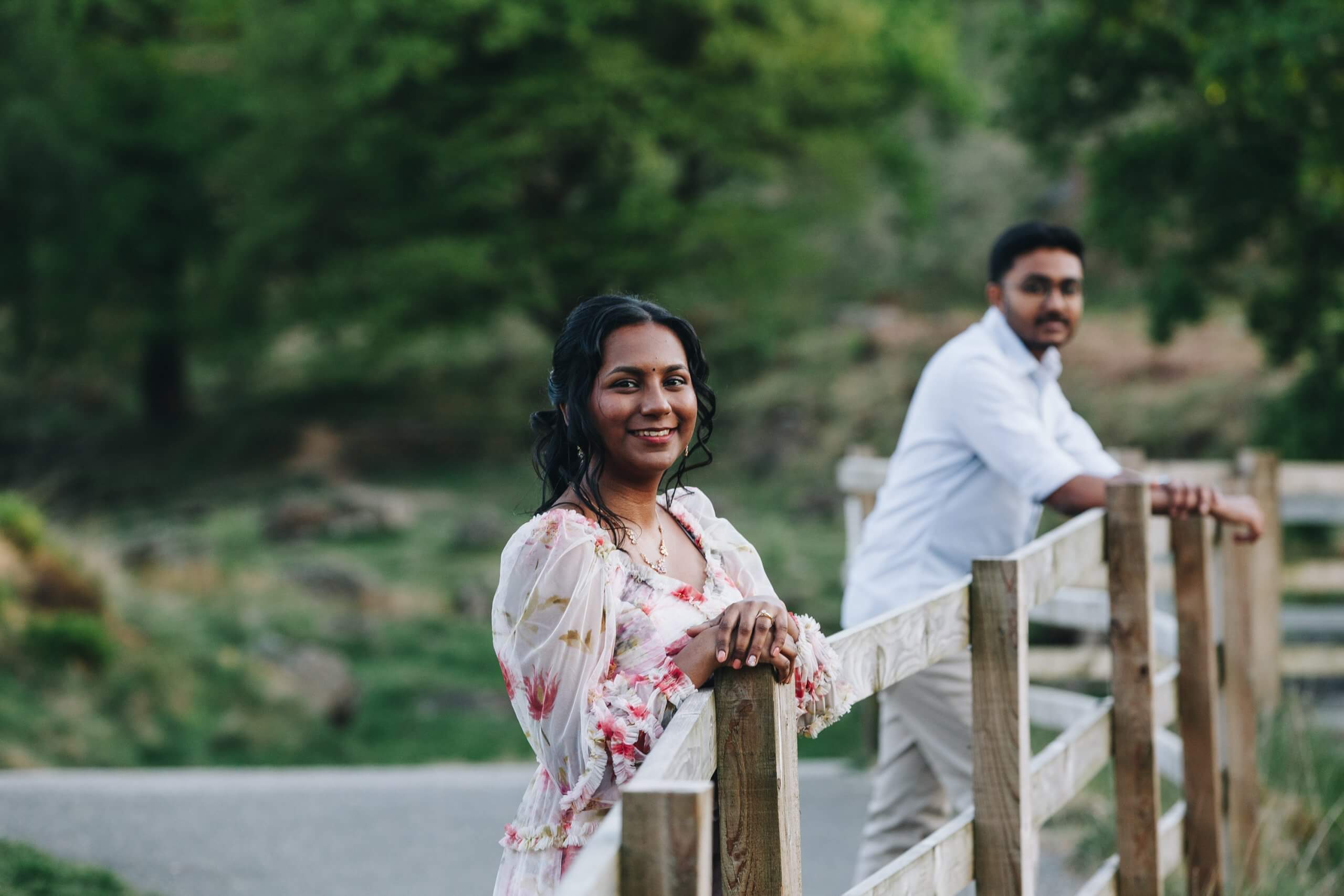 This engagement session with Barati & Kartik was all about embracing nature, movement, and connection. We met at the trailhead just as the sun began to dip, casting warm amber tones across the landscape.
